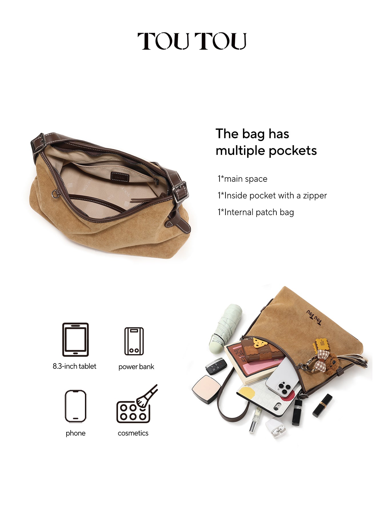 ✅ Multiple Pockets: Includes 1 main space, 1 inside zipper pocket, and 1 internal patch bag for organized storage.