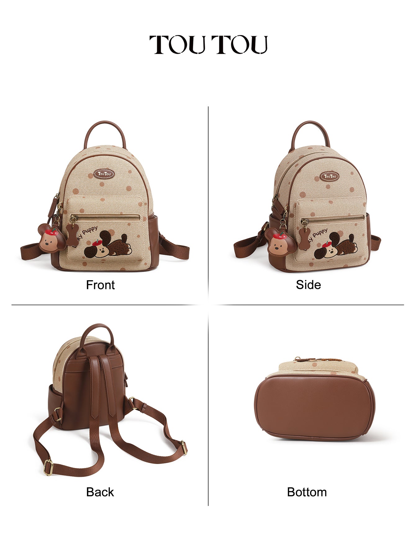 Add a playful twist to your everyday style with this TouTou cartoon puppy mini backpack! Adorned with adorable puppy embroidery, charming polka dots, and cute pendants, it brings whimsy to work, dates, or casual outings. Lightweight and functional, it balances fashion and practicality perfectly.